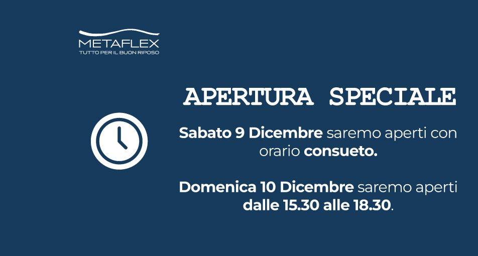 Venerdì 8 Dicembre rimarremo chiusi per festività, sabato 9 Dicembre saremo aperti con orario consueto, mentre domenica 10 Dicembre saremo aperti dalle 15.30 alle 18.30!